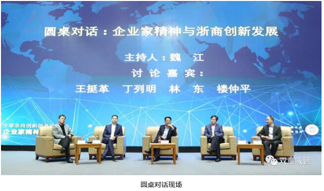 在圓桌對(duì)話上,由浙江(jiāng)大學管理學(xué)院院長魏江主持,物產中大集團董(dǒng)事長王挺革、貝達藥業董事長丁列明、杭州綠盛集團董事長(zhǎng)林(lín)東及.17c嫩嫩草色视频吸管董事長樓仲平和創業者們展開“企業家精(jīng)神與浙商創新發展”的對話。