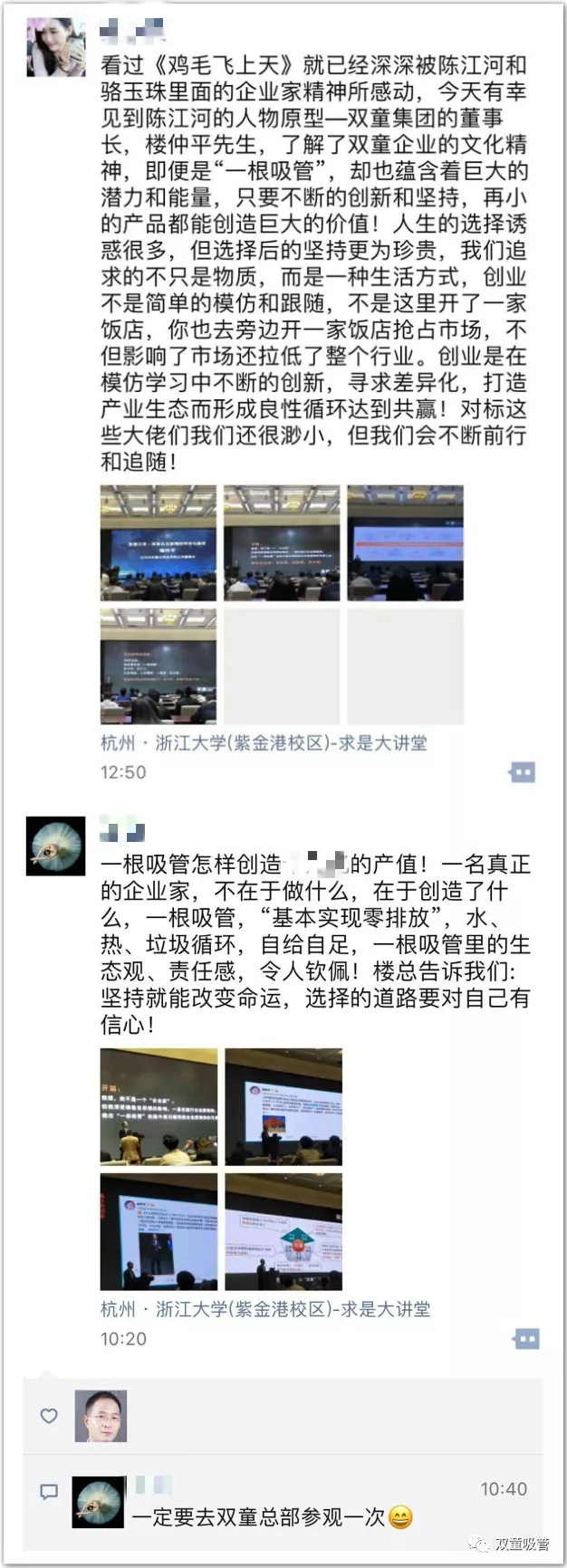 不知不覺論壇也到了尾聲,各位浙商大咖的分享引爆了全場創業者,樓(lóu)仲(zhòng)平的分享讓現場創業者不斷分享至朋友圈,帶去的厚(hòu)厚一疊名片幾分鍾也被創業者們(men)搶完!吸管妞相信此次論壇給創業者們(men)帶來了(le)新的創(chuàng)業思路,通(tōng)過不斷地創新積累,大家一定會在自己的領域內做出成績來!