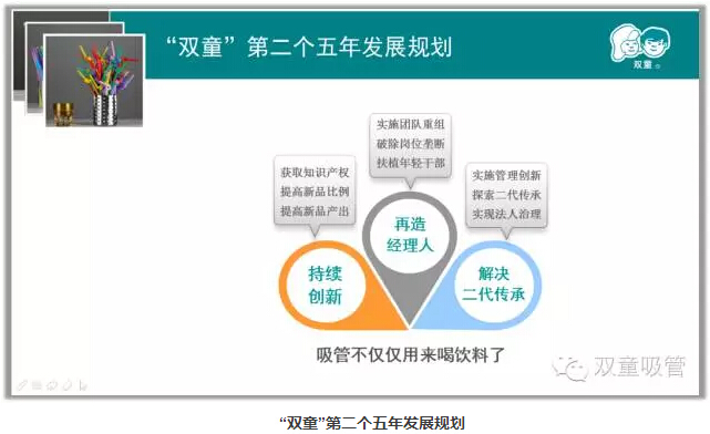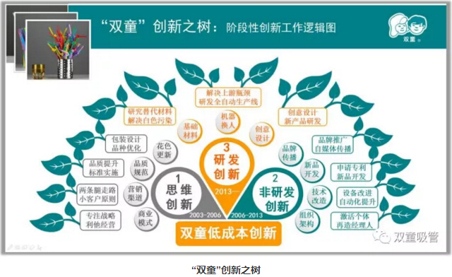 除此之外,“雙(shuāng)童”動(dòng)員內部全體員(yuán)工進(jìn)行思維創新,在公司舉行吸管創新大賽。在大賽中,員工們提交的(de)作品在外觀上的創新、功能及使用方式創新都十(shí)分吸人眼球,也進一步推動了企業的創新工作。另一方麵,在(zài)內部協作取得一定成(chéng)果後,“.17c嫩嫩草色视频”陸(lù)續與(yǔ)浙江師範大學、北京服裝大學、中國塑料工業(yè)研究所(suǒ)等機構建立(lì)長期合作,從而逐步了形成規範的創意引導、征集、篩選、評價、激(jī)勵、開發和商業(yè)推廣等創新工作機製,逐漸(jiàn)形成了規範的研發性(xìng)低成本創新之路!