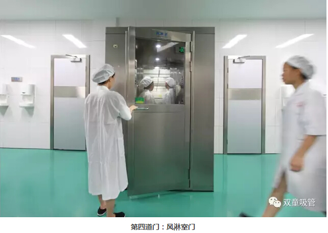 5.員工們(men)風淋後經過第五道車間入口門,進入車間進行生產工作。