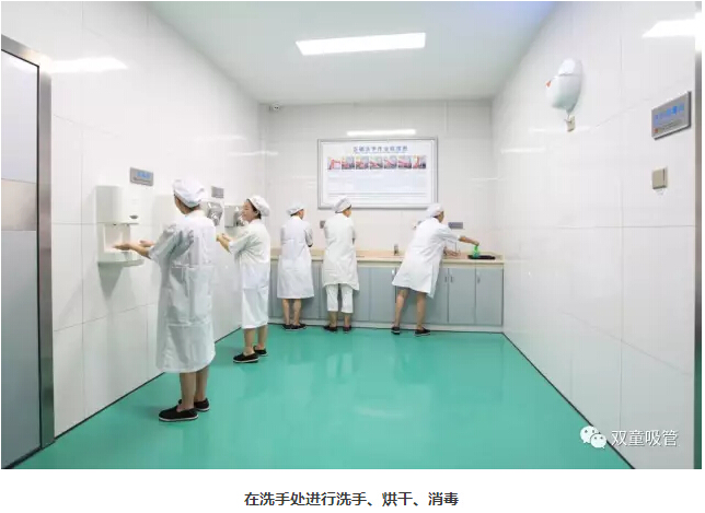 4、整理(lǐ)完衣物後,來到洗手消毒間,進行洗手、烘幹、消毒。