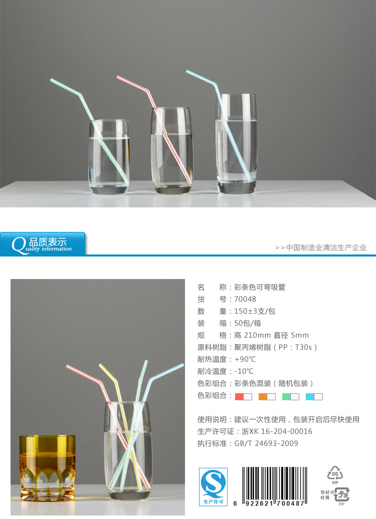 70048雙(shuāng)童150支彩(cǎi)條色家庭裝彎吸管
