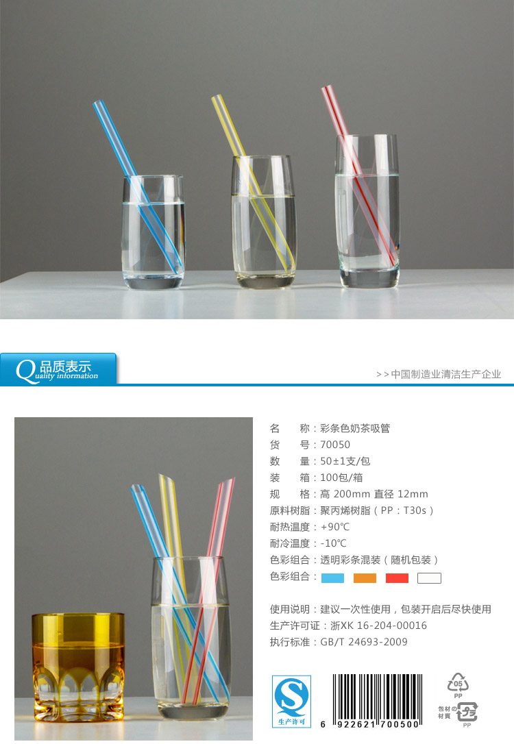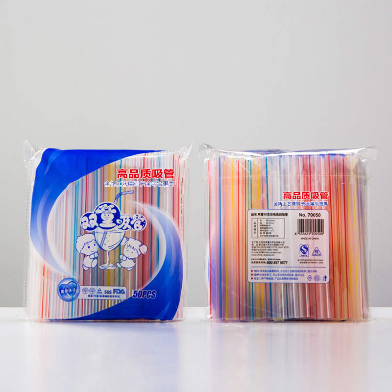 70050雙(shuāng)童50支透明彩(cǎi)條色珍珠奶茶吸管