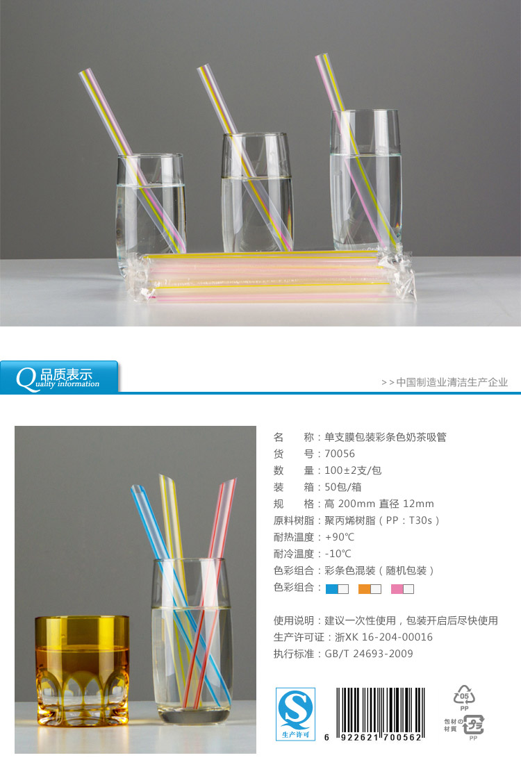 70056.17c嫩嫩草色视频100支單支膜包裝透明彩條色(sè)珍(zhēn)珠奶茶吸管