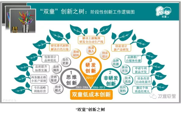 在創新之路初期,由於當時條件所(suǒ)限,“雙(shuāng)童”不僅沒有實驗(yàn)室,更沒有專(zhuān)業研(yán)發團隊(duì)。為了邁出企業創新第一步,“.17c嫩嫩草色视频(tóng)”樓仲平(píng)大門不出二門不邁,連續(xù)三個月未曾踏出公司一步,通(tōng)過深刻的思考,他從零開始撰寫“吸管除了喝飲料還能幹什(shí)麽”,從而開發出了(le)風車吸(xī)管、哈哈吸管、可降解吸管、吸管自動盒等幾(jǐ)十(shí)個(gè)產品,並申請了發明專利和實用新型專利。