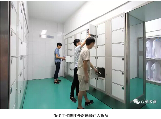 2、員工來到第一更衣區,將自己的私人衣物儲(chǔ)存(cún)在櫃子中。