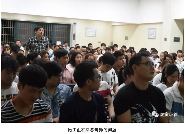 在經過(guò)一番詳細的講解和培訓後(hòu),毛(máo)講師還出了好(hǎo)幾個小(xiǎo)考題,想(xiǎng)要考一考我們的員(yuán)工們。這(zhè)當然難不倒我們的員工啦,看,一個(gè)個胸有成竹地站起來響亮(liàng)回答,真(zhēn)是棒棒的!
