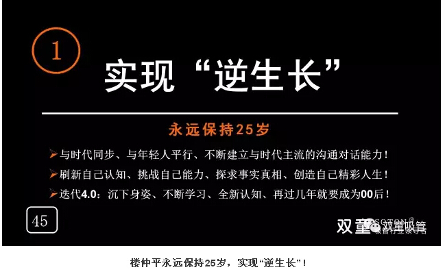 樓仲平(píng)認為,這個時代的主人是年輕人。所以他努力(lì)地保持空杯心態,認知到不斷發(fā)生的變化,跟年輕人發生鏈接。在過去的中國(guó)曆史中,如果你(nǐ)能說服年長者(zhě),年(nián)輕人就會跟隨;而在今天,你隻有說服了年輕人,長輩們就會跟隨你!在這個時代,年輕人更能接受新的變化,更能理解新鮮事物,更能獲得(dé)新的機(jī)遇。50後、60後、70後們隻能(néng)更努力地向年輕人靠攏,向年輕人學習,才不會被這個時代所拋棄。
