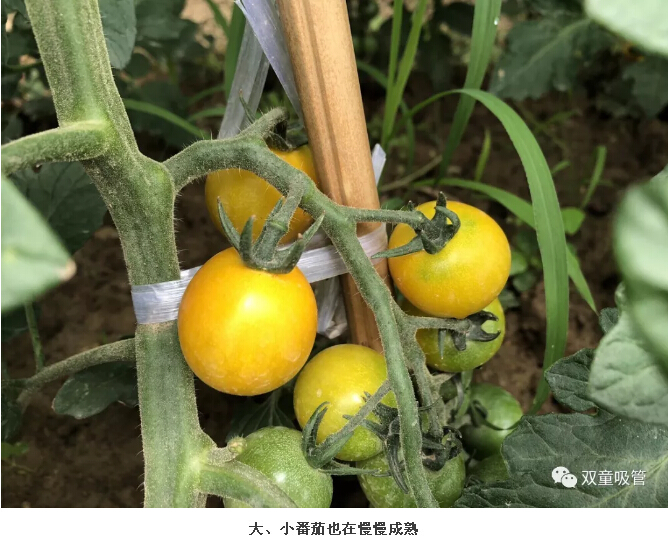 除了黃(huáng)瓜之外,菜園中的番茄也是(shì)一道(dào)靚麗的風景哦!瞧,一根藤上冒出好幾個番茄,大的,小的(de)......摘了一顆放在嘴裏(lǐ),香甜鮮美,別有一番味道呢!
