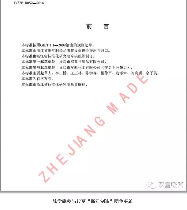 現在,陳學森主要(yào)負責客戶審廠、質量檢驗(yàn)、產(chǎn)品衛(wèi)生防護、掌(zhǎng)握產品動(dòng)態(tài),收集質量信(xìn)息等(děng)工作。2016年,他(tā)還參與了“浙江(jiāng)製造”團體標準《聚丙烯飲(yǐn)用吸管》的起草工(gōng)作(zuò),為企業又拿到了一(yī)頂標準方(fāng)麵的桂冠!這也意味著經過這些年(nián)的努力,他終於從一個基層員工真正成長為吸管行業的專家。