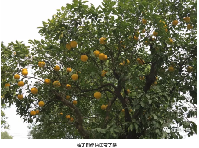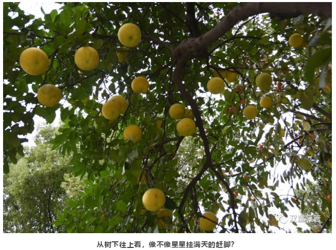 已(yǐ)經轉黃的大柚子高高低低的掛滿了(le)枝頭,和青綠的葉(yè)子應和著,煞是好看!