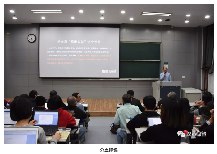 課程現(xiàn)場,同學們聽得聚精會神,大家時而用手機拍下精彩的課件內容,時而用電腦或紙筆記錄下精彩的講師語(yǔ)錄……樓仲平的(de)分享深(shēn)深吸引了浙大的學生們,許多學生全程站(zhàn)著聽完課程,直至課程結束,沒有一人離開。