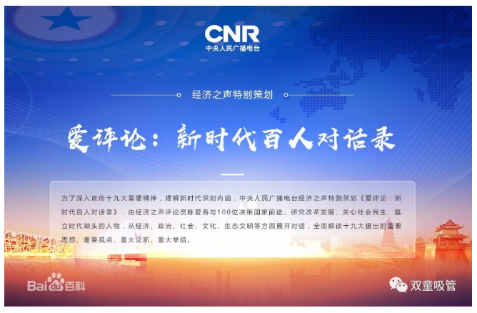 《愛評論:新時代百人對話錄(lù)》,由(yóu)中央(yāng)廣播電視總台經濟之聲首(shǒu)席評論員陳愛海與100位決策國家(jiā)前途、研究改革發展、關心社會民生、挺立時代潮頭的人物,從經濟、政治(zhì)、社會、文化、生態文(wén)明等方(fāng)麵展(zhǎn)開對話,引領方向、引導(dǎo)輿論、引發(fā)思考,彰顯國家電台(tái)的傳播力、影響力、公信(xìn)力。