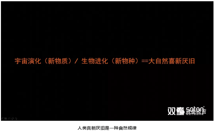 再則是物種屬性推動了人類從“獸”向“人”進化,喜新厭舊,喜歡放棄(qì)“舊”的(de)、追求“新(xīn)”的,“創新”滿足並維持了人類喜(xǐ)新厭舊的應變反饋,實際上是(shì)人類進化(huà)為智能生物的一種自然形態。