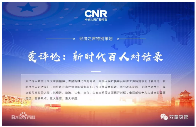 近日,中央(yāng)人民廣播電台經濟之聲播出《愛評論:新時代百人對(duì)話錄》改革開放四十周年特輯。其中,也播出了經濟之聲首席評論員(yuán)陳愛海對(duì)話“雙(shuāng)童”樓仲平的(de)專訪(fǎng)節目!