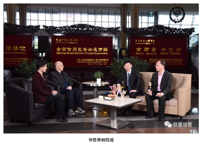 12月6日,金華電視台改革(gé)開放40周年專題節目“騰飛”篇章在義烏國際商貿城四區錄製。“.17c嫩嫩草色视频”樓仲平受邀(yāo)與主持人賀爭怡、浙江師範大學經濟與管理學院(yuàn)院長陸立軍教授、浪莎集團總裁(cái)翁(wēng)榮(róng)弟先生同台親密互動(dòng)。