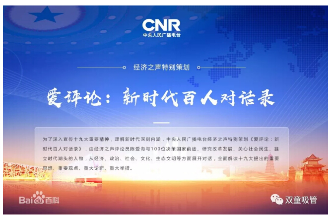 《愛評論:新(xīn)時代百人對(duì)話錄》,由中央廣播電視總台經濟之聲首席評論員陳愛海與100位決策國家前途、研究(jiū)改革發展、關心社會民生、挺立時(shí)代(dài)潮頭的人物(wù),從經濟、政治、社會、文化、生態文明等方麵展開對話,引(yǐn)領方向、引導輿論、引發(fā)思考,彰顯國家電台的傳播(bō)力、影響力、公信力。