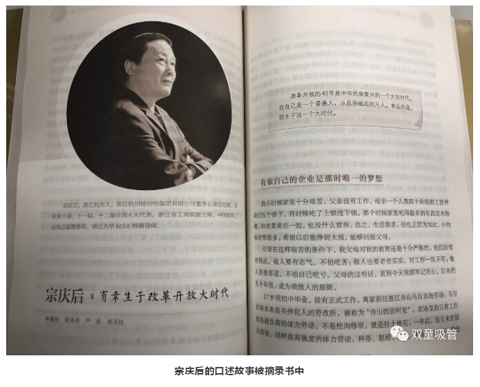 杭州娃哈哈集(jí)團有限公司董事(shì)長宗慶後,口(kǒu)述故事《有幸生於(yú)改革開放大時代》被摘錄《浙江改革開放40年口述曆史》一(yī)書中……