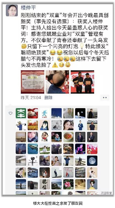 樓大大驚喜的領取到了證書和特別的(de)禮物,最(zuì)蠱惑(huò)人(rén)心的獲獎詞更是讓他哭笑不得(dé)、百感交集…… 領完獎後,樓大大(dà)在“驚嚇”之(zhī)餘發了朋友圈,引起朋友圈一片轟動! 一個真敢頒,一個真敢領啊!