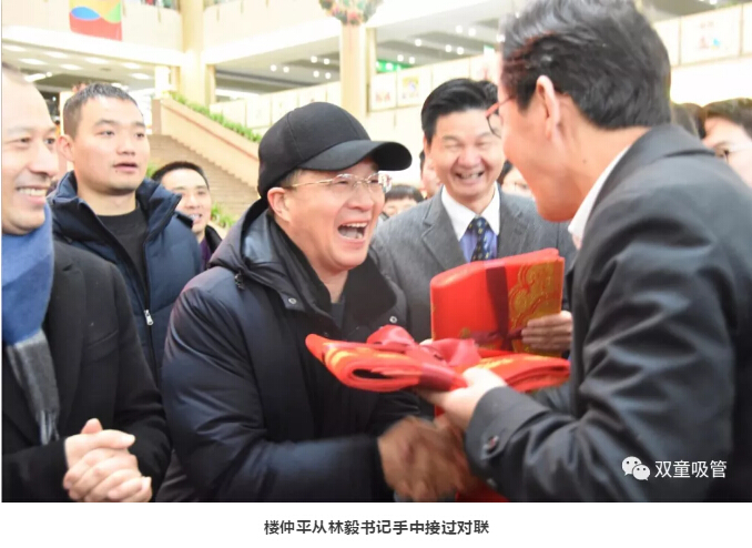 “雙(shuāng)童(tóng)”樓仲平也受邀前往國際商貿(mào)城四區參加開市儀式,從林毅書記手中接過(guò)對聯,新的一年大吉大利(lì),步步高升!