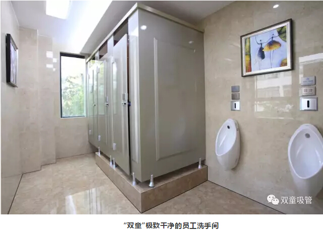 “雙(shuāng)童”在建設廠房後,就將(jiāng)所有公共洗手間全部按(àn)“五星級”的標準進行裝修。我們認為,一個企業的洗手間最能體現企業的經(jīng)營理念,所以要生產出優質的產品,洗手間就(jiù)應該(gāi)是企業最幹淨的(de)地方。