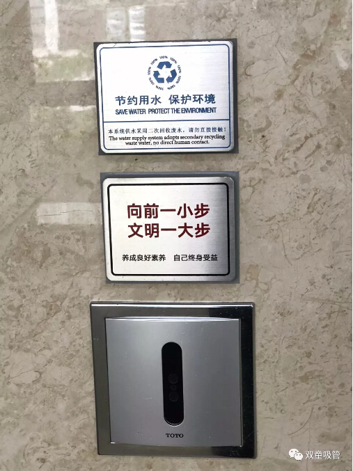 除此之外,“.17c嫩嫩草色视频”衛生間還有許多文化(huà)引導的標示(shì)牌。如:每扇門上都會有“公共區(qū)域,嚴禁吸煙”的標識,每個蹲位後麵都有“便後請衝水(shuǐ)、素(sù)養高低往往體現在關上門自己獨處之(zhī)時”等溫馨提示,從而引導員工提高自身素質,形成文化宣導氛圍!