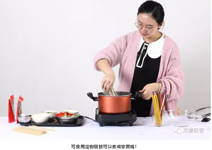用“雙(shuāng)童(tóng)”可食用澱粉吸管煮麵條,不論是湯(tāng)麵、醬麵(miàn)還是拌麵,那味道都是杠杠滴(dī)!連懷孕了的吸管(guǎn)妞和年幼的小朋友都(dōu)能放心享用哦!