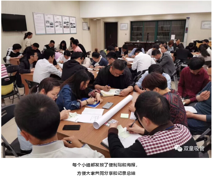 與此同時,我們給每個小組都分發(fā)了便利貼和海報,讓(ràng)每個小組成員將自己的觀點提煉記錄下來,方便大(dà)家(jiā)共(gòng)同分享和記錄總結。