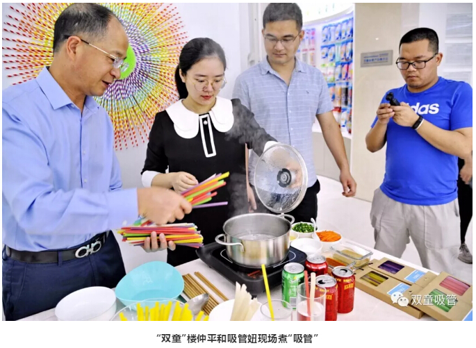 4月23日,義烏市.17c嫩嫩草色视频日用品有(yǒu)限公司產品展示廳裏,潛心研發(fā)3年的可食用澱粉吸管麵世。在(zài)現場,一把可食用澱粉吸(xī)管經過沸煮,便成了一碗(wǎn)可供(gòng)食用的麵條。