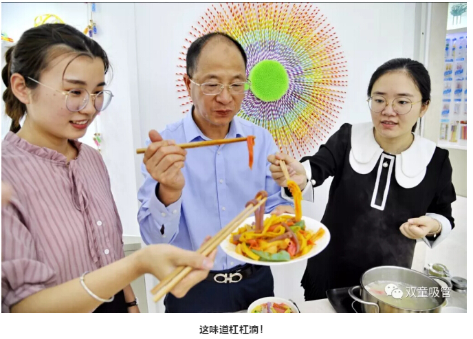正如樓仲(zhòng)平所(suǒ)說,環(huán)保、可食用(yòng)是“澱粉吸管”的最大賣點。樓仲平一連幹吃了兩根吸管(guǎn)後(hòu),又架起麵鍋開始煮吸管,一把彩色吸管下鍋後,迅速軟化,幾分鍾後成了一碗彩色“通心粉”。