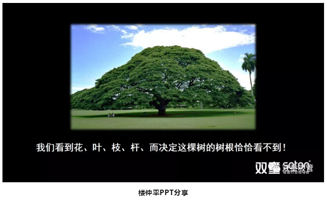 緊接著,樓仲平通過一棵樹的圖片(piàn),再次引導大家思考:我們通過圖片能看到樹的樹幹、樹枝、樹葉等,但(dàn)是真正決定這棵樹的樹根,卻並不能直接看到。