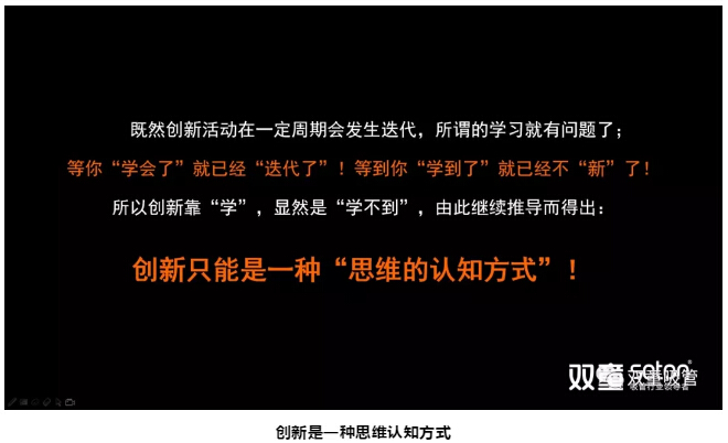 所以創(chuàng)新是不斷迭代的,靠“學”,顯然是“學不到”,創新隻(zhī)能是一種“思維認知方式”。