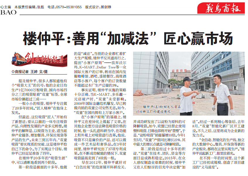 這不,《義烏商報》發出了《樓仲平:善(shàn)於(yú)“加減法”匠心贏市場(chǎng)》的專題報道,一起來(lái)看看吧!