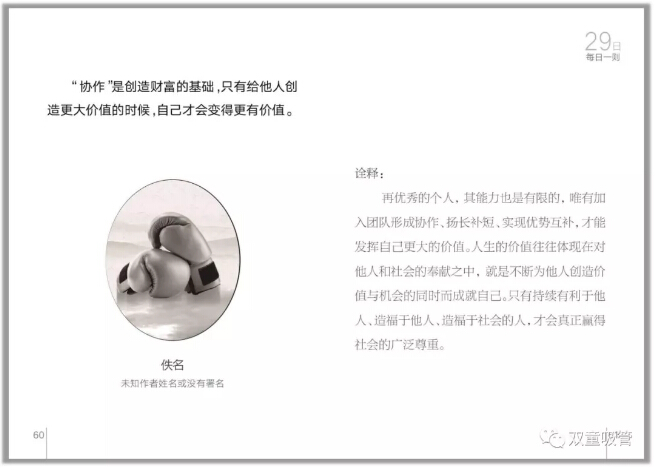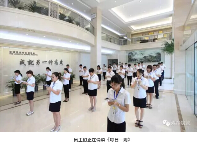當然,“雙(shuāng)童”的這些文化標語(yǔ)除了在牆麵展示之外,也被收錄到“.17c嫩嫩草色视频”企業文(wén)化叢書《每日一則》當中,每天誦讀(dú)一篇《每日一則》成為“.17c嫩嫩草色视频”員工(gōng)們的必修課,哪怕是在車間裏工作的基層員工也是每天雷打不動地要誦讀哦(ò)!
