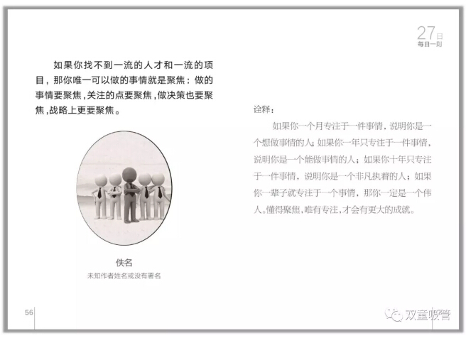 如果你找(zhǎo)不到一流的人才和一流的項目,那你唯一可以做的事情就是聚焦:做的事情要聚焦,關注的點要聚焦,做決策也要(yào)聚焦(jiāo),戰略上更(gèng)要聚焦。——佚(yì)名