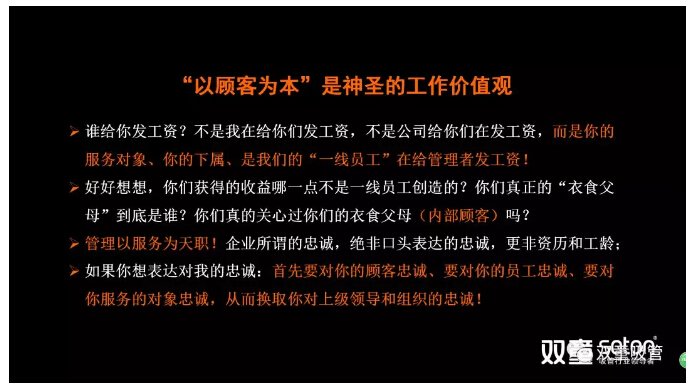 第二問題:對於管理者來講“以顧客(kè)為本”的顧客是一線員工。