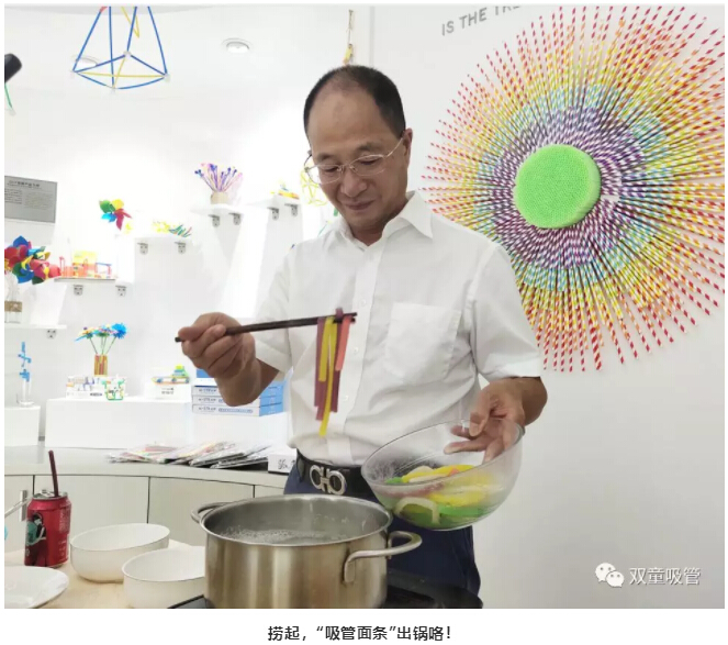 看!五顏六色的(de)可食用澱粉吸管(guǎn)準備齊全,樓(lóu)大大親自掌(zhǎng)勺煮“吸管麵條”啦(lā)!