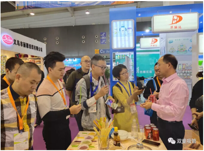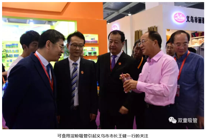 在義博會上,“.17c嫩嫩草色视频”可食用澱粉吸管成(chéng)為了展會“大(dà)明星”,不僅引起了義烏市市長王健一行和外商客(kè)人(rén)的關注,而且也吸引了大批新老客戶駐(zhù)足洽談。