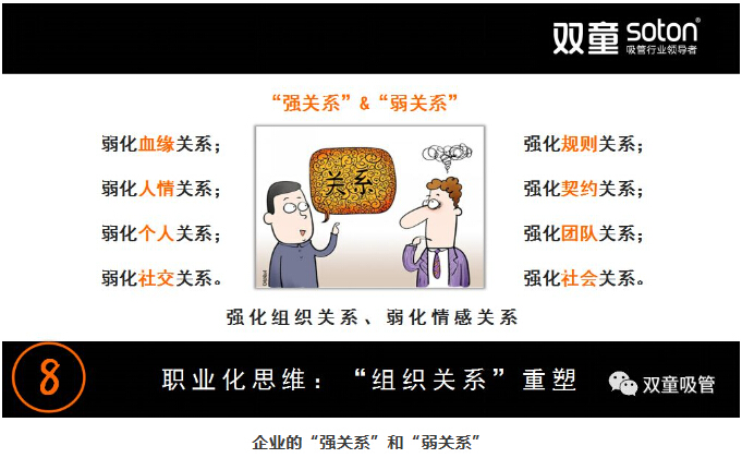 這樣的一種弱關係原(yuán)則可以讓管理者將大部分的精(jīng)力專注於企業內部(bù)的管理,專注於事務解決,從而建立起一(yī)套健康發展的(de)管理邏輯。