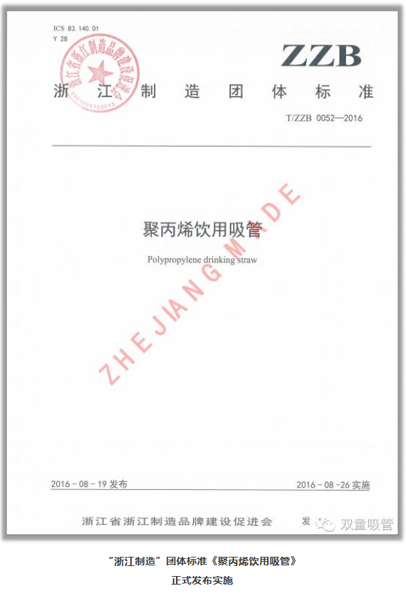 此標準的實施(shī)也有助於提高聚丙烯飲用吸管製造行業的整體技術水平,引領浙江製造業的轉型升級!