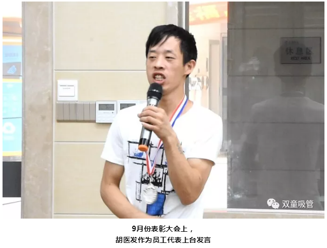 9月份表彰大會上,胡醫發作為優秀(xiù)員工代表上台發言:“公司開展(zhǎn)的競賽給了(le)我更多(duō)的鼓勵和信心,得到(dào)這樣的榮譽,我(wǒ)感覺自己的奮鬥(dòu)得到了肯定,自己的工作得到了大家(jiā)的(de)支持,以後我會更加努力,做得比(bǐ)之前更好(hǎo)。”