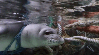 被廢棄物纏繞的海豹,脖子上出現一條深深(shēn)的血痕