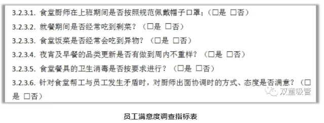在此次後勤團隊競賽中,評比依據主要是以食堂成本控製、食堂安全、衛生(shēng)、質(zhì)量等方麵進行評比,其中尤為重要的一個指標就是員工滿意度,公司(sī)每月(yuè)會進行2次員工滿(mǎn)意(yì)度調查,抽取60名員工對食堂工作(zuò)進行評價,以此(cǐ)作為評比依據。