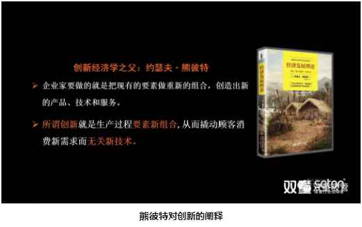 創新經濟學之父約瑟夫·熊彼(bǐ)特,曾在(zài)其著作《經濟(jì)發展理論》中對“創(chuàng)新”做了重新定義:所謂創新就是生產過程中的要(yào)素新組(zǔ)合,從而撬動顧客消費新需求(qiú)而無關新技術。企業家要做的就(jiù)是把現有的要素(sù)做重(chóng)新的組合,創造出新的產品、技術和服務。其本質就是所謂(wèi)的創新。