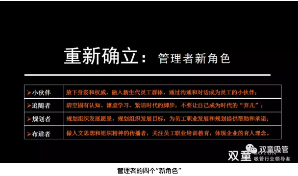 麵對不同的員工(gōng)群(qún)體,尤其(qí)是個性鮮明的90後員工,作為管理者,首先我們需要改變傳統的管理者角色(sè),學會轉變、扮演四個新角色: