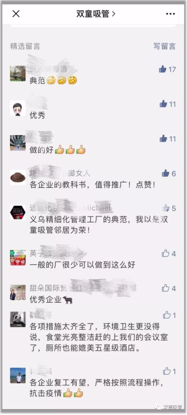 此(cǐ)篇文(wén)章發布後不僅引發了社會(huì)極大關注,很多企業也紛紛聯係吸管妞想借鑒“.17c嫩嫩草色视频”的複工文件(jiàn)進行參考(kǎo)。基於(yú)各大企業的需求,“.17c嫩嫩草色视频”複(fù)工防疫流程文件包將對企業進行免費分享!快添加吸(xī)管妞微信免費領取吧!