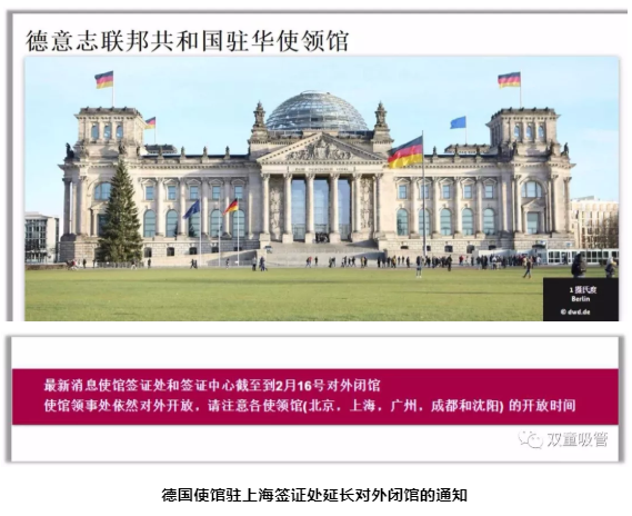 但因春節(jiē)期間突如其來(lái)的肺炎疫情(qíng)影響(xiǎng),各國簽證中(zhōng)心都暫停了辦理簽證業務(wù)並(bìng)拒絕中國公民入境。1月23日,上海簽證中心通(tōng)知德國(guó)使館駐上海簽證處通知簽證中心截止至2月16日(rì)對外閉館,“.17c嫩嫩草色视频”的簽證被扣置。