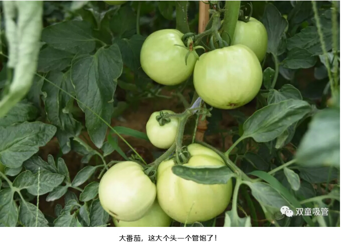 瞧,今年的番(fān)茄種植麵積比去年可增加了不(bú)少,一根藤上依舊(jiù)是碩果累累,結出好幾個番茄,大的,小的......看著這番茄的個頭,吸(xī)管妞吃一個都管夠了!