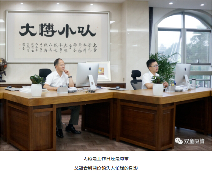 特別是(shì)在“雙(shuāng)童(tóng)”新建二期廠房期間,無論是周末(mò)還是節假(jiǎ)日,總能在公司裏看到(dào)樓(lóu)仲平及總經理李二橋的身影,對他們而言,“白+黑”,“5+2”是(shì)再正常不過的事了,特別(bié)是樓仲平時(shí)常忙得連吃飯都沒(méi)有時間,往往點個(gè)外賣(mài)邊吃邊工作了事。