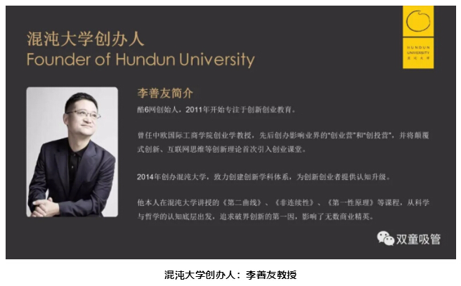 你好,我是李善友,我是一個講課(kè)的人,你或許知道我,我(wǒ)創辦了一個民營的學校——混沌大學,這些年,混沌大學陪伴了上百萬(wàn)中國的創業者,我們基於(yú)哲學和科學思維,尋找本質,打破邊界和大家一起探索中國的商業創新(xīn)。